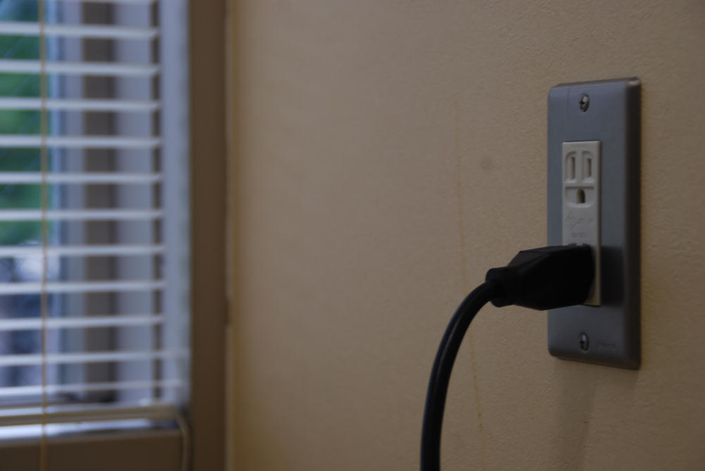 喫煙室へ行って、僕はまぁくん(リングネーム)が見守る中、D40にストラップを取り付けた。そして取り付け終わると、おもむろにカメラを構え、コンセントの写真を撮った。カシャリ。