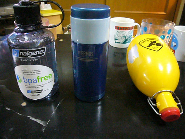 真ん中の青いのは、「サーモス」の魔法瓶タイプ。