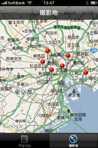 これの凄いのは、3G時代の写真から、位置情報が表示されると言うモノ。