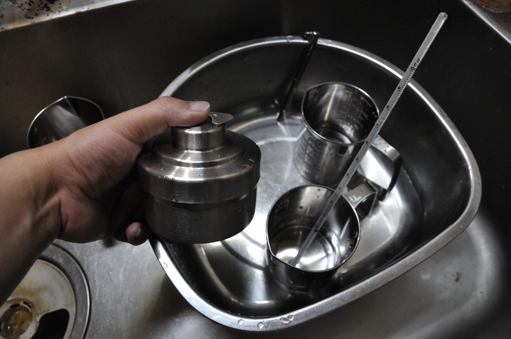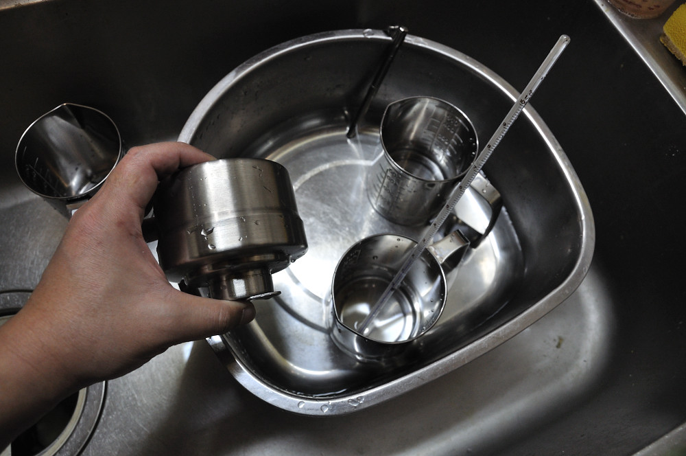 先にも書きましたが、安静中は桶の中の水に浸しておくと温度が変化しにくくて良いです、が、あんまり一杯水を張っておくと水がタンク内に進入するか、液が漏れだしてくる可能性があるので、要注意です。間違っても水没させないように、張る水はそこそこに。