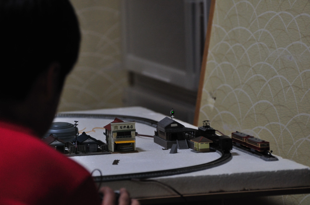 R君はその後、ずーっとNゲージの側から離れず、ひたすら列車を走らせて遊んだ。プラレールと違い、デリケートなので大切に扱うように教えたが、それも守っている。線路は出しっぱなしにしておくので、いつでも遊んで良いと伝えると、「おーっ」と言って喜んでいた。
