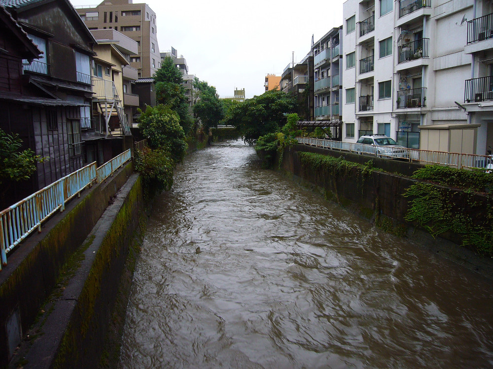 で、今日、駅までの道程で見てきた神田川が上の写真です。普段の水量は明日写真に撮ってきます。そうすればどれくらい増水しているか解るでしょう。