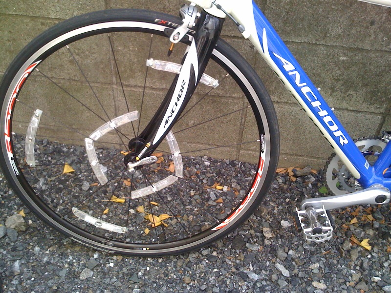 と、言うことで、昼休み、イノッチと僕とで、それぞれの自転車に付いていたリフレクターをアンディーのアンカーに、こそっと取り付けた。