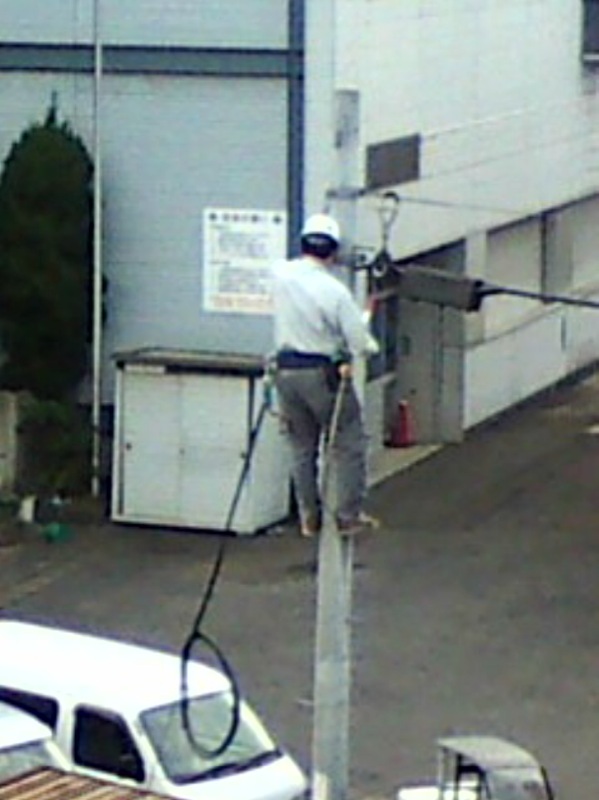 電柱とは全く縁のない部門で、実際は関係ないのですが、人生で初めて、電柱に昇りました。ひょんな事から高所恐怖症のこの僕が。(まあ、半ばヤケクゾで、自分から「昇る」と言ったのですが)