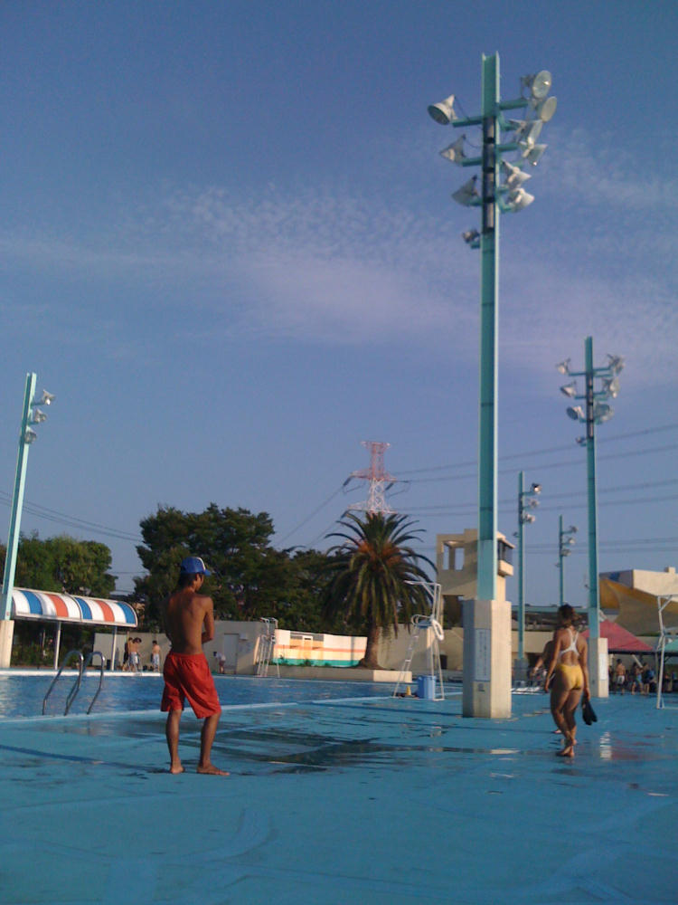 区民プールと言うと、ジジババ子供しかいないと想像していたのだが、さすがにこれだけの設備があるので、若いカップルのデートでも使われているらしく、老若男女もの凄い人出である。そりゃそうだろう、としまえんのプールに行ったらとても高くついてしまうが、ここなら一人500円で、1日中遊べるのだ。