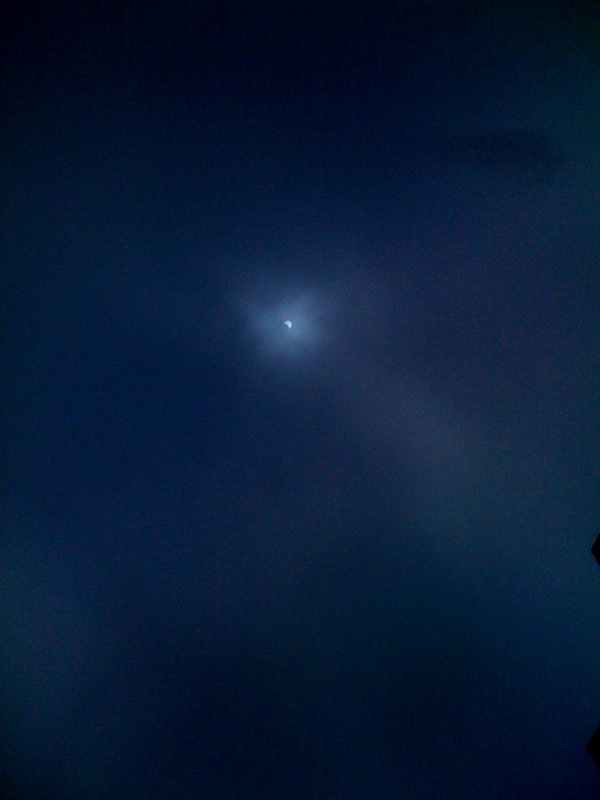 僕はと言えば、今日は天候が悪いと言うことでしたが一応念のためカメラを会社に持っていき、朝までは日食を見る気満々だったのですが、普段グウタラのくせにこういう日に限って仕事に熱中してしまい、日食の事など完全に忘れ去っていました。すると、昼休みの終わり頃に奥様から、