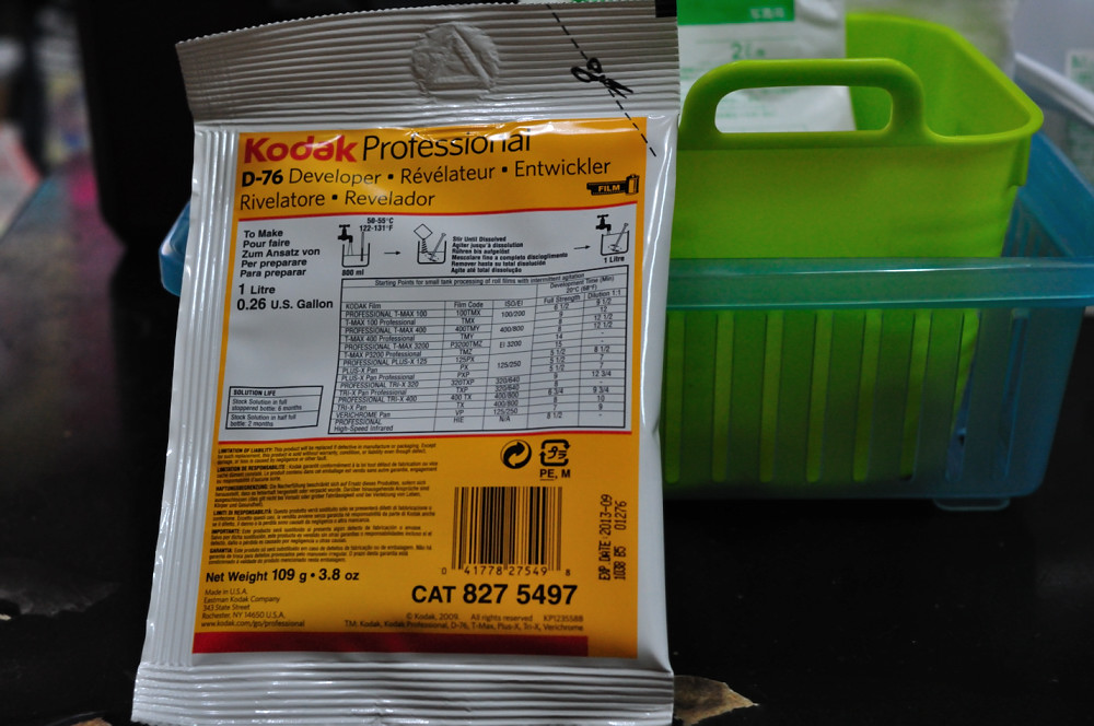 色々なメーカーから色々な現像液が出てますが、僕はTRI-Xを使っていると言うのもあって、コダックのD-76を使用します。粉末で溶かすタイプで、僕は1リットル用を使用しました。