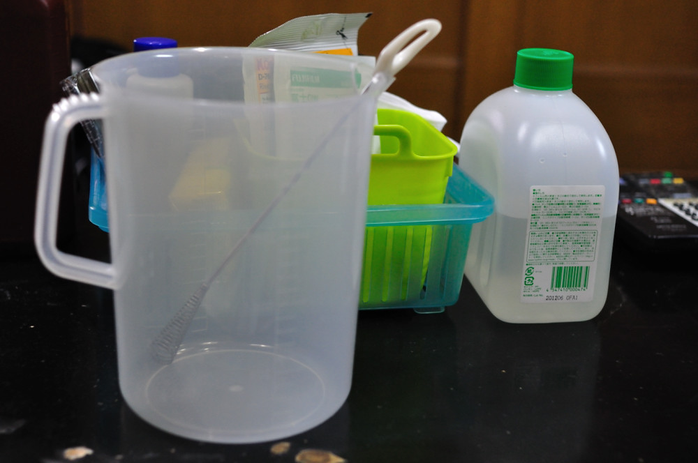 保存はこういうポリビンがあると便利ですし、「これは薬品だぞ!」というオーラをだして家族を近づけない為には良いですが、別に日が当たらないところに置くならばペットボトルでも大丈夫だと思います。が、間違っても飲んだりしないように注意しましょう。