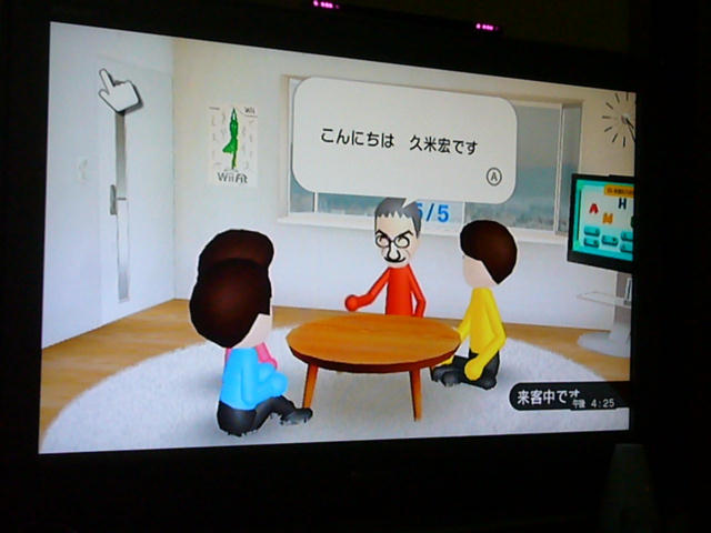 バーチャル空間は、ちゃんと時間にあわせて外の風景も変わるし、リアル空間が雨だったら雨が降る。今日は子供の日なので、ベランダには鯉のぼりが掲げてあるほどの凝りよう。バーチャルな自宅には予め決めておいたMii(アバター)が出てくるんだけど(僕の場合は家族全員を入れておいた)、これが勝手に動き回る(寝転がったり掃除したりする)ので、動画のコンテンツを観ていなくてもおもしろい。今現在、「Wiiの間」を全く操作せず、Miiがどう動くのか見て楽しんでいる。