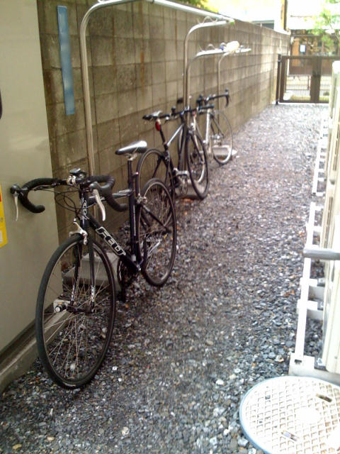 珍しく、自転車通勤組の自転車が会社に揃った。手前からイノッチのFELTのZ、SIGEのR1、僕のキャノである。